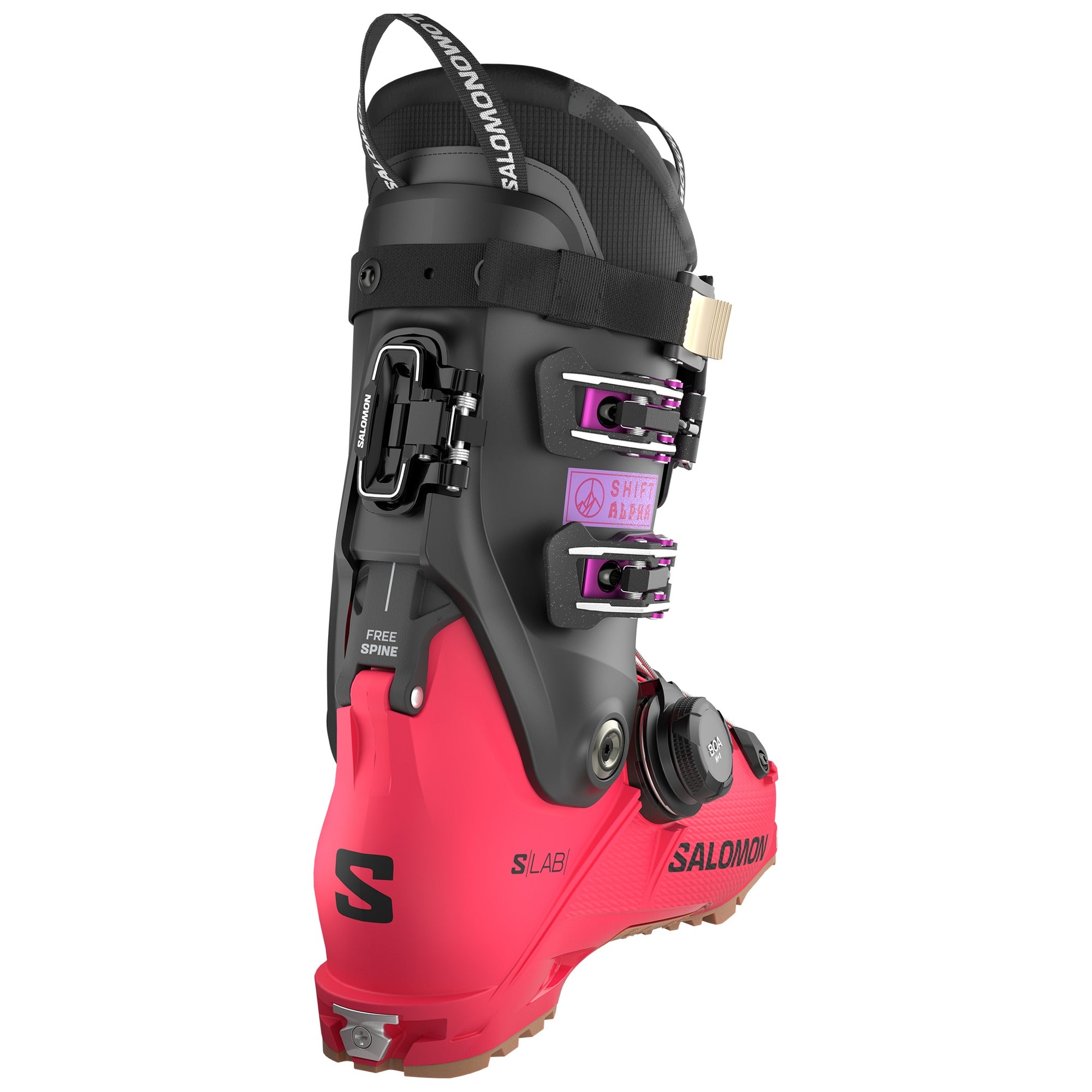 Det som skiljer S-Lab från vanliga Shift Alpha BOA 130 är främst att Salomon har byggt på med ett extra lager plast på insidan av skaftet (medialsidan). Syftet är att öka styvheten och ge en mer direkt, alpin känsla i kantgrepp och stöd. Nackdelen är att den enligt Salomon ger lite mindre rörlighet i gåläge, men det här är också en pjäxa som tydligt siktar på "all about the down".