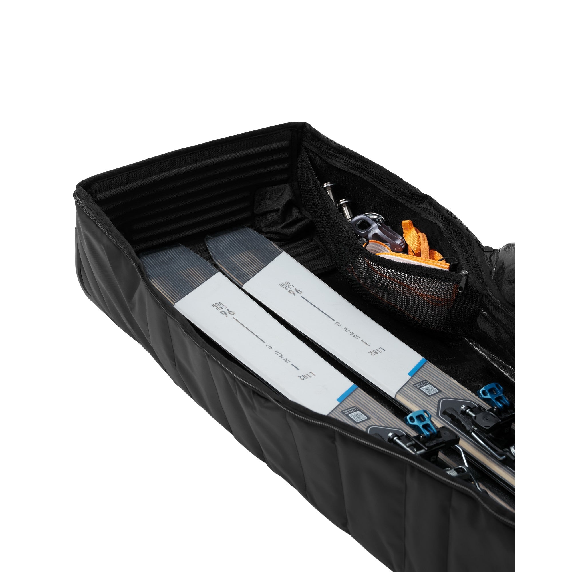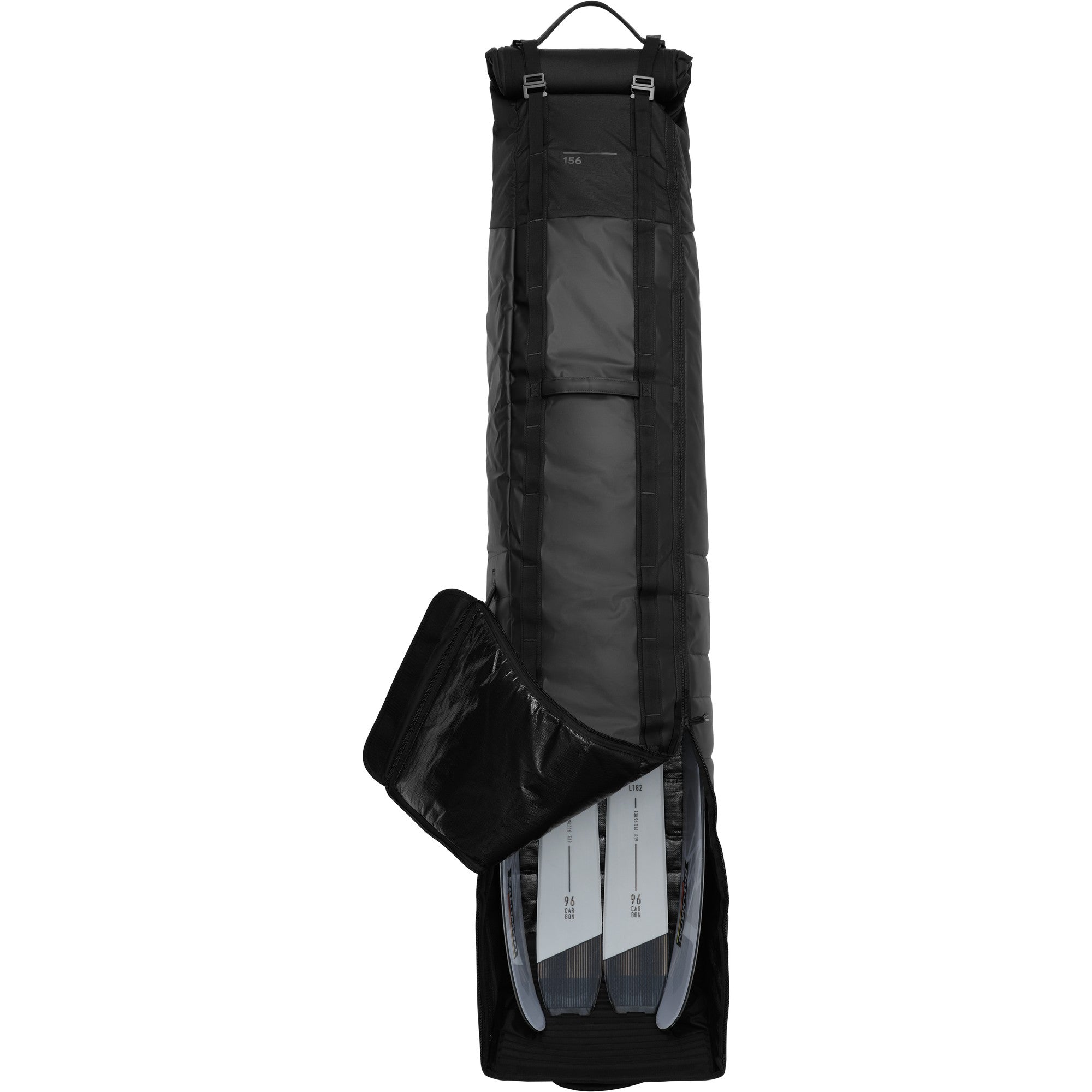 Justerbar Längd: Den patenterade längdjusteringen anpassar väskan till längden på dina skidor eller snowboard, upp till 203 cm, vilket garanterar en perfekt passform och stabil transport.